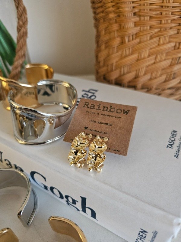 Par de aros de aluminio bañado en oro y plata, de peso liviano y tamaño medio. Los aros protagonistas de tu look son todo lo que necesitas para resaltar tus basicos. Se recomienda no mojarlos con agua ni alcohol para conservar su brillo más tiempo.