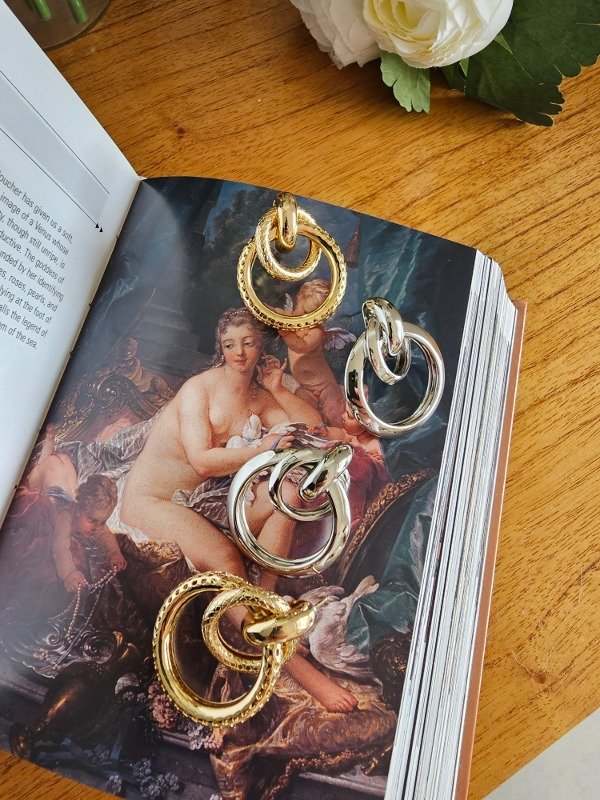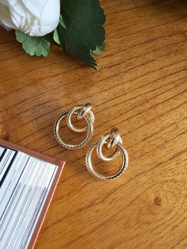 Par de aros de aluminio bañado en oro y plata, de peso liviano y tamaño medio. Los aros protagonistas de tu look son todo lo que necesitas para resaltar tus basicos. Se recomienda no mojarlos con agua ni alcohol para conservar su brillo más tiempo.
