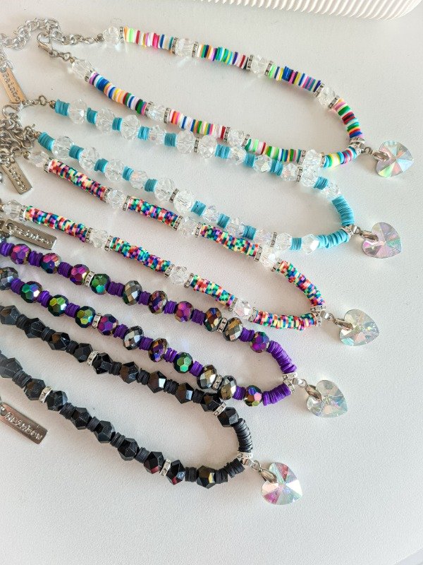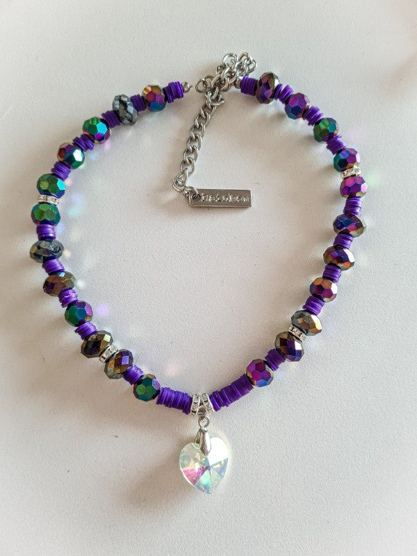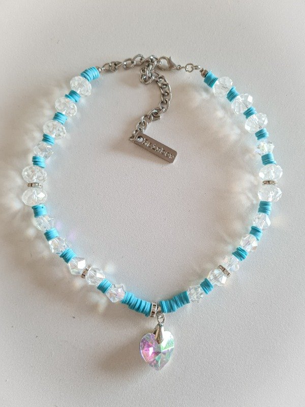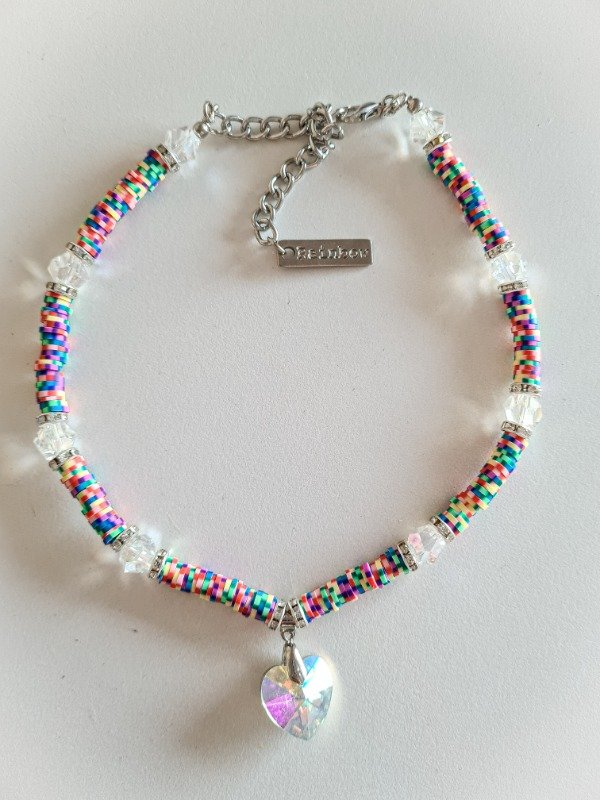 Gargantilla de Fimo y cristal de roca, con dije de corazón de cristal